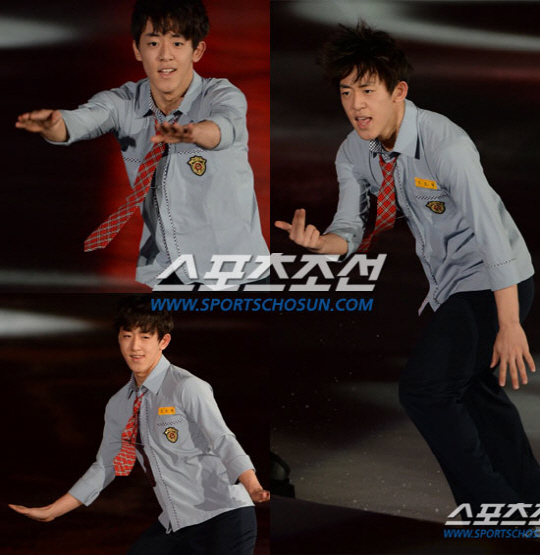 6일 서울 송파구 올림픽공원 체조경기장에서 열린 김연아 아이스쇼 '올댓스케이트 2014' 무대에서는 김진서가 엑소의 히트곡 '으르렁'에 맞춰 화려한 연기를 뽐냈다.