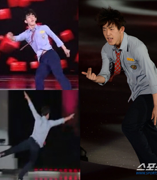 6일 서울 송파구 올림픽공원 체조경기장에서 열린 김연아 아이스쇼 '올댓스케이트 2014' 무대에서는 김진서가 엑소의 히트곡 '으르렁'에 맞춰 화려한 연기를 뽐냈다.