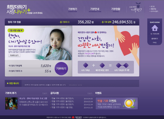 이번 캠페인은 '희망더하기 사랑나누기' 홈페이지(http://donation.betman.co.kr/)를 통해 31일까지 참여할 수 있다.