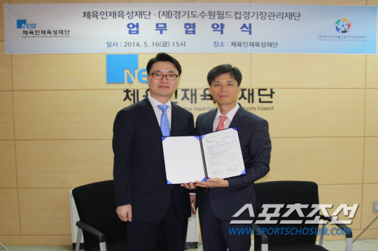 체육인재육성재단과 경기도수원월드컵경기장관리재단이 업무협약을 체결했다