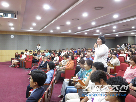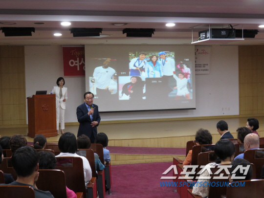 ◇장미란재단 이사장 장미란이 특강 직후 여성 스포츠인들을 대표해 특강 직후 소감을 이야기하고 있다.