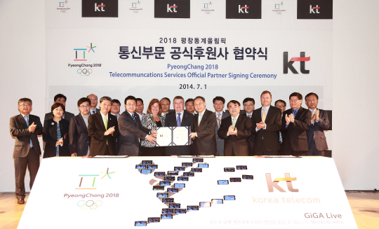 2018년 평창동계올림픽 및 장애인동계올림픽대회 조직위원회(위원장 김진선)와 대한민국 대표 통신기업인 (주)KT(회장 황창규)가 1일 오후 KT 광화문사옥 올레스퀘어 드림홀에서 평창동계올림픽 '통신' 부문에 대한 공식후원사 협약식을 가졌다. 협약식에는 2014년 소치 국제올림픽위원회(IOC) 디브리핑을 위해 방한 중인 토마스 바흐 IOC위원장과 린드버그 IOC조정위원장이 함께 참석했다.