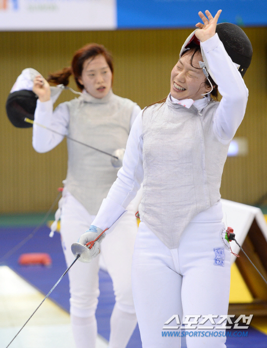 대구대 4학년으로 나서는 마지막 한미대학펜싱선수권 4강전에서 운명처럼 서로를 마주했다. 한치 양보없는 일전이었다. 7-7, 8-8, 9-9, 10-10… 박빙의 시소게임을 이어갔다. 10-10 동점에서 1분간 휴식을 취했다. 땀이 비오듯 흘러내렸다. 땀에 흠뻑 젖은 서로를 바라보며 환하게 미소 지었다.