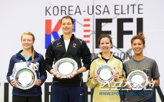 홈스는 9일 수원실내체육관에서 열린 제4회 한미대학펜싱선수권(2014 KUEFI) 여자 에페에서 금메달을 따냈다. 이번 대회 남녀 6개 종목 중 유일한 미국인 금메달리스트다. 반브루멘은 아쉽게 16강에서 탈락했다. 지질학 현장 수업 때문에 두달 가까이 칼을 잡지 못했던 것이 아쉬웠다. 둘은 미국에서도 주목하는 펜서다. 홈스는 전미랭킹 3위, 반브루멘은 4위다. 15일 개막하는 카잔세계펜싱선수권에 미국 대표로 나선다. 지금의 랭킹을 유지하면 4장의 출전권이 주어지는 2016년 리우올림픽에 출전할 수 있다. 리우올림픽은 펜싱을 사랑하는 그녀들의 꿈이다.