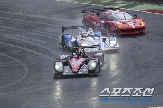 ◇지난해 인제 스피디움에서 열린 첫번째 아시안 르망 시리즈에서 머신들이 빗길을 뚫고 서킷 위를 질주하고 있다. 사진제공=인제스피디움