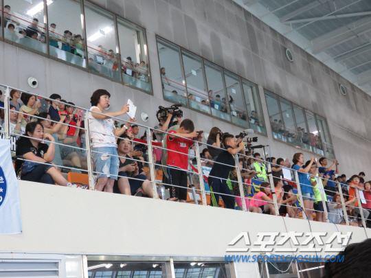 한편 이날 김천실내수영장은 '마린보이' 박태환의 등장으로 후끈 달아올랐다. 초등학생 수영선수들과 학부모들은 박태환이 스타트대 앞에 등장하자 일제히 스마트폰 카메라를 들어올려 촬영에 열중했다. 박태환은 침착하게 몸을 풀며 경기를 준비한 후, 안정적인 레이스로 대회 신기록을 작성했다. 전광판으로 기록을 확인한 후 결선준비를 위해 쏜살같이 풀을 빠져나갔다. 김천=전영지기자 sky4us@sportschosun.com