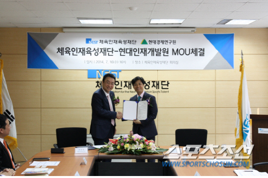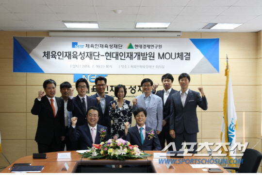 16일 오후 4시 체육인재육성재단 회의실에서 송강영 체육인재육성재단 이사장, 김나미 사무총장, 하태형 현대경제연구원장, 박태일 현대인재개발원 본부장 등이 참석한 가운데 인재육성 전문기관간 전략적 업무협약을맺었다. 글로벌 체육인재 육성을 위한 체계적인 중장기 계획을 통해, 효과적인 인재양성 체계를 구축하기 위한 협약이다. 양 기관은 2012년부터 학교운동부지도자 직무교육을 현대인재개발원에서 진행하면서 인연을 맺기 시작했다. 이번 협약을 통해 재단은 양 기관이 보유한 핵심역량을 기반으로 양질의 교육과정과 역량있는 강사 교류 등을 통해 체육인재들에게 최고 수준의 교육 서비스를 제공한다는 방침이다.
