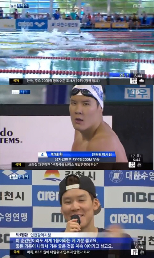 박태환의 이번 기록은 올 시즌 남자 자유형 200m에서 세계 랭킹 1위의 기록을 세운 캐머린 맥어보이(1분45초58, 호주)를 넘어서는 기록이었다.