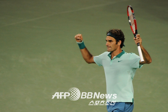 | ◇로저 페더러가 앤디 머리를 꺾은 후 기뻐하고 있다. 신시내티(미국 오하이오주)=ⓒAFPBBNews = News1 |