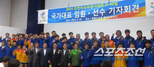 금메달을 약속했다. 설욕을 다짐했다. 비인기종목에 대한 관심을 호소했다. 세월호의 아픔, 영화 '명량'의 용기도 이야기했다. 지독한 훈련으로 다져진 '자신감'이 있었다. 2014년 인천아시안게임을 30일 남겨놓은 20일, 서울 공릉동 태릉선수촌 챔피언하우스에서 열린 '인천아시안게임 D-30 합동 기자회견'에 나선 선수들은 자신감이 넘쳤다.