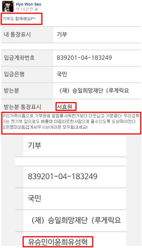 '훈남' 유승민 코치와 '탁구얼짱' 서효원의 미션 수행은 특별했다. 얼음물 샤워에 그치지 않았다. 유 코치는 본인과 부인 이윤희씨와 세살바기 아들 조성혁군의 이름으로 '승일희망재단'에 기부한 후 기부 인증샷을 SNS에 공개했다. 기부 계좌를 공유하고 기부 방법 역시 상세히 설명했다. '우리가족이름으로 기부 완료.얼음물 샤워한 것보다 더 뜻깊고 기분좋다. 우리 성혁이는 첫 기부.앞으로도 베풀며 마음 따뜻한사람으로 클 수 있도록 도와줘야겠다. 모든 병마와 힘겹게 싸우시는 여러분. 모두 힘내세요!'라는 따뜻한 메시지와 함께였다.