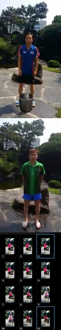 ◇위로부터 유남규 남자탁구 대표팀 감독, 유승민 남자대표팀 코치, 탁구스타 서효원의 아이스버킷 챌린지 얼음샤워 인증샷..