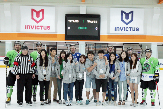23일 밤 10시 30분 열린 한국독립아이스하키리그 7라운드 마지막 경기에서 특별한 시구가 진행됐다. 보통 시구는 단독으로 진행되는 게 보통이지만 이날은 링크가 북적였다. 시구의 주인공은 대학생 마케터 '페이스오프'였다.