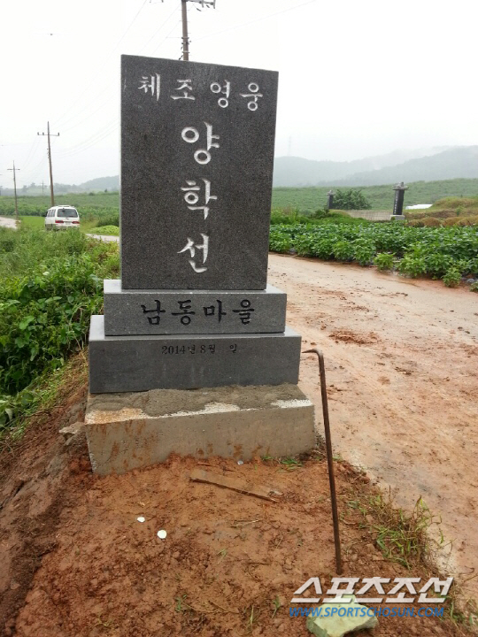 28일 오전 전북 고창 공음면 석교리 남동마을에서는 뜻깊은 행사가 열렸다. 런던올림픽, 광저우아시안게임, 도쿄세계선수권, 앤트워프세계선수권, 카잔유니버시아드에서 세계를 제패한 '체조영웅' 양학선의 공을 기리는 비석이 건립됐다. 비가 부슬부슬 내리는 궂은 날씨속에 마을 사람들이 모여 마을 입구에 비석을 설치했다. '체조영웅 양학선, 남동마을'이라는 글씨를 새겼다. 시군청이 아닌, 마을사람들의 자발적인 힘으로 건립된 뜻깊은 비석이다.