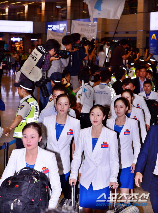 인천 아시안게임 개막을 3일 앞둔 16일 북한 선수단 본진이 고려항공 전세기로 인천공항을 통해 입국했다. 북한은 이번 대회에 14개 종목 150명의 선수를 출전시키기로 했다. 북한 선발대 94명은 장수명 북한 올림픽위원회(NOC) 대표와 임원, 심판진, 의료진, 기자단을 포함해 축구, 조정 관련 감독, 심판, 선수 등으로 구성돼 있다.