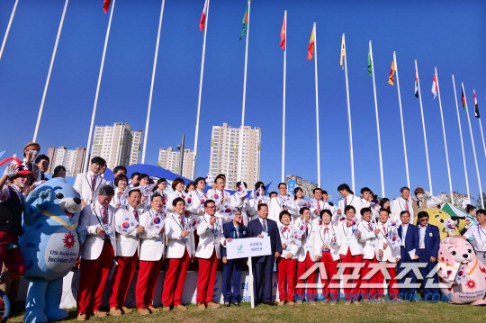 박순호 단장이 이끄는 한국 선수단이 18일 오후 4시 인천 구월아시아드선수촌 국기광장에서 입촌식을 치렀다. 주최국 한국은 이에리사 선수촌장 주관으로 진행되는 입촌식에 참석, 2014 인천아시안게임을 본격적으로 준비하게 됐다.