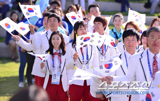 박순호 단장이 이끄는 한국 선수단이 18일 오후 4시 인천 구월아시아드선수촌 국기광장에서 입촌식을 치렀다. 주최국 한국은 이에리사 선수촌장 주관으로 진행되는 입촌식에 참석, 2014 인천아시안게임을 본격적으로 준비하게 됐다.