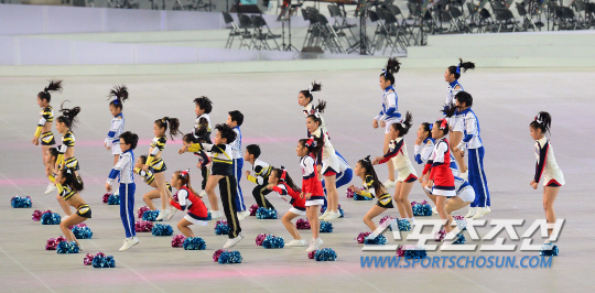제17회 인천 아시안게임 개막식이 19일 인천아시아드주경기장에서 열렸다. 맞이행사로 한국에서 개최한 역대 메가 스포츠 이벤트 주제가와 함께하는 응원쇼가 펼쳐지고 있다.