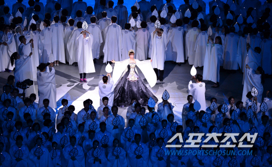 19일 오후 인천 아시아드 주경기장에서 제17회 인천아시아경기대회 개막식이 열렸다. 이번 인천 아시안게임은 아시아 45개국 25,000여 명의 선수단이 출전해 10월 4일 폐막까지 36개 종목에 걸쳐 실력을 겨루게 된다. 사진은 지난 17일 열린 개막식 리허설에서 성악가 조수미가 '인천의 노래'를 열창하는 모습