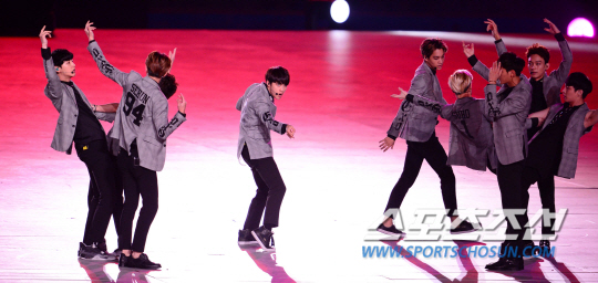 19일 인천 아시아드 주경기장에서 '45억 아시아인의 축제' 2014 인천아시안게임의 화려한 개회식이 열렸다. 개회식은 '45억의 꿈, 하나 되는 아시아'를 주제로 3시간 동안 화려한 대회 개막을 알렸다. K-팝 가수들의 공연과 한류 스타들의 축하 메시지 영상을 상영하는 맞이 행사를 시작으로 인천 아시안게임 홍보대사인 JYJ가 공식 주제가 '온리 원'(Olny One)을 부르고 피날레는 '월드스타' 싸이가 장식했다. 개막식에서 그룹 엑소가 축하공연을 펼치고 있다.