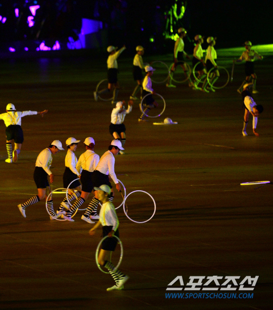 제17회 인천 아시안게임 개막식이 19일 인천아시아드주경기장에서 열렸다. 아시아의 새로운 미래를 여는 굴렁쇠 퍼포먼스가 펼쳐지고 있다.