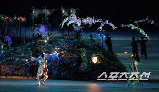 제17회 인천 아시안게임 개막식이 19일 인천아시아드주경기장에서 열렸다. '인천-하나된 아시아를 만나는 곳, 1막 아주 오래전의 아시아'가 펼쳐지고 있다.