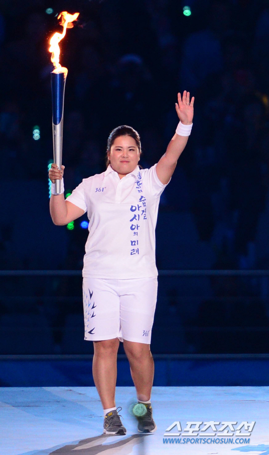 19일 인천 아시아드 주경기장에서 '45억 아시아인의 축제' 2014 인천아시안게임의 화려한 개회식이 열렸다. 개회식은 '45억의 꿈, 하나 되는 아시아'를 주제로 3시간 동안 화려한 대회 개막을 알렸다. K-팝 가수들의 공연과 한류 스타들의 축하 메시지 영상을 상영하는 맞이 행사를 시작으로 인천 아시안게임 홍보대사인 JYJ가 공식 주제가 '온리 원'(Olny One)을 부르고 피날레는 '월드스타' 싸이가 장식했다. 개막식에서 박인비가 성화를 봉송하고 있다.