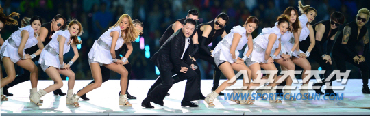 19일 인천 아시아드 주경기장에서 '45억 아시아인의 축제' 2014 인천아시안게임의 화려한 개회식이 열렸다. 개회식은 '45억의 꿈, 하나 되는 아시아'를 주제로 3시간 동안 화려한 대회 개막을 알렸다. K-팝 가수들의 공연과 한류 스타들의 축하 메시지 영상을 상영하는 맞이 행사를 시작으로 인천 아시안게임 홍보대사인 JYJ가 공식 주제가 '온리 원'(Olny One)을 부르고 피날레는 '월드스타' 싸이가 장식했다. 개막식에서 싸이가 공연을 하고 있다.