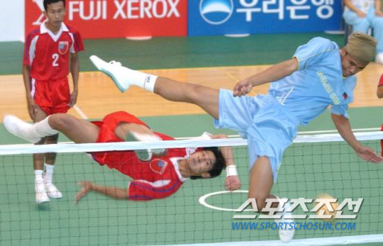 뉴욕 타임스가 이례적으로 아시안게임 종목 중 서양에는 잘 알려지지 않은 세팍타크로와 카비디를 집중 조명했다. 사진은 지난 2002년 부산아시안게임 세팍타크로 미얀마와 말레이시아의 경기. 스?츠조선 DB