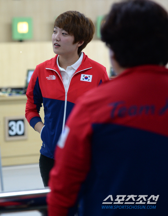 2014 인천아시안게임 사격 여자 10m 공기권총 본선이 20일 인천 옥련국제사격장에서 열렸다. 김장미가 본선경기를 마친 후 기록을 살펴보고 있다. 김장미는 1위로 결선에 진출했지만 단체전에선 4위를 기록하며 첫 메달획득은 불발됐다. 인천=허상욱 기자 wook@sportschosun.com