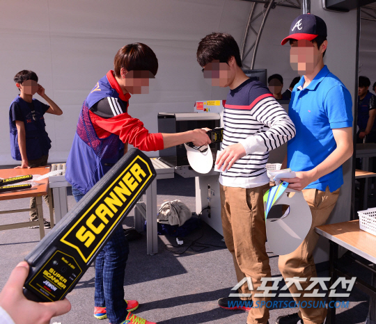 20일 오전 인천 송도글로벌대학 비치발리볼장에서 2014 인천 아시안게임 여자 비치발리볼 한국과 카자흐스탄의 경기가 열렸다. 경기장 입구에서 전문 보안 검색요원이 아닌 아르바이트생이 관객들의 검색을 하고 있다.
