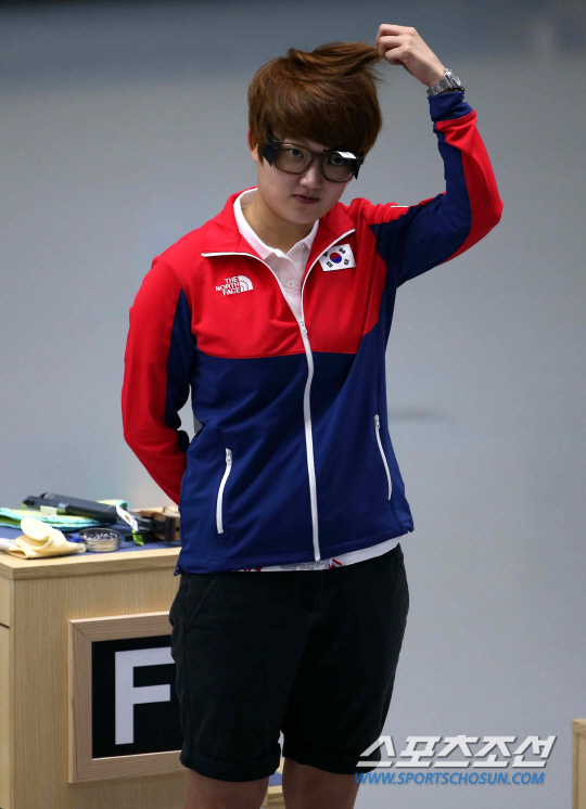 2014 인천아시안게임 사격 여자 10m 공기권총 결선이 20일 인천 옥련국제사격장에서 열렸다.결선에서 96.1점, 7위를 기록한 김장미가 아쉬워하고 있다.