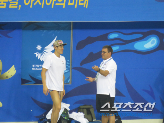 박태환은 스타트, 잠영으로 이날 2시간 훈련을 마무리한 후 선수촌으로 돌아갔다. 박태환은 19일 볼 감독, 박태근 코치, 손석희 물리치료 트레이너, 이인호 체력담당 트레이너와 함께 선수촌에 입소했다. 대한수영연맹이 박태환의 경기력 과 심리를 좌우하는 박태환 전담팀 스태프 전원에게 AD카드를 지급하고 선수촌 아파트를 배정했다. 3개의 방으로 구성된 선수촌 아파트에서 호주 출신의 볼 감독이 독방을 쓰고, 박태환은 손 트레이너와 한방을 쓴다. 연맹은 호주 출신 볼 감독을 준국가대표 감독으로 예우하며, 인천에서의 최고 성적을 위해 지원을 아끼지 않고 있다. 지난 5월 '박태환의 매형'인 김대근 총괄실장이 박태환의 매니지먼트사인 팀GMP에 부임한 이후 연맹과의 해묵은 앙금과 세간의 오해들을 털어냈다. 런던올림픽 직후 포상금 지급 문제로 논란에 휩싸인 연맹과 박태환은 안방에서 열리는 인천아시안게임을 앞두고 한마음으로 소통하고 있다. 박태환 역시 편안한 마음으로 안방 아시안게임, 자신의 3번째 아시안게임을 준비하고 있다. 박태환의 아시안게임 첫 단추, 자유형 200m 경기는 20일 오전 9시 예선에 이어, 이날 오후 7시 결선이 시작된다. 인천=전영지 기자 sky4us@sportschosun.com