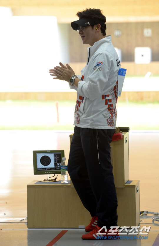 2014 인천아시안게임 사격 남자 50m 공기권총 결선이 20일 인천 옥련국제사격장에서 열렸다. 진종오가 결선에서 92.1점으로 7위를 기록하며 경기장을 빠져나오고 있다.