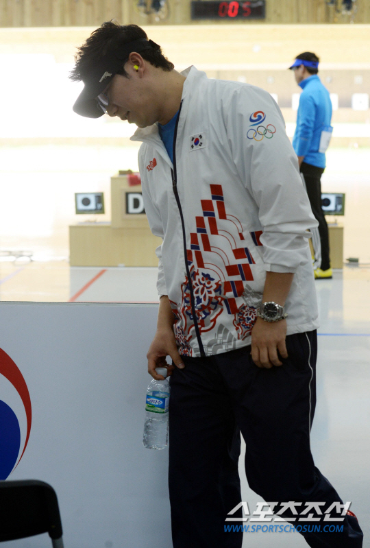 2014 인천아시안게임 사격 남자 50m 공기권총 결선이 20일 인천 옥련국제사격장에서 열렸다. 진종오가 결선에서 92.1점으로 7위를 기록하며 경기장을 빠져나오고 있다.
