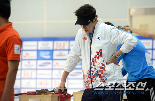 2014 인천아시안게임 사격 남자 50m 공기권총 결선이 20일 인천 옥련국제사격장에서 열렸다. 진종오가 결선경기에서 잘 풀리지 않는듯 아쉬운 표정을 짓고 있다. 진종오는 92.1점으로 7위를 기록하며 메달획득에 실패했다.