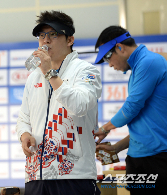 2014 인천아시안게임 사격 남자 50m 공기권총 결선이 20일 인천 옥련국제사격장에서 열렸다. 진종오가 물을 마시고 있다. 진종오는 결선에서 92.1점으로 7위를 기록하며 메달 획득에 실패했다.