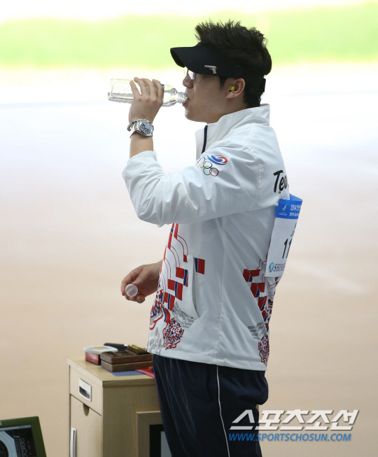 2014 인천아시안게임 사격 남자 50m 공기권총 결선이 20일 인천 옥련국제사격장에서 열렸다. 진종오가 물을 마시고 있다. 진종오는 결선에서 92.1점으로 7위를 기록했다.