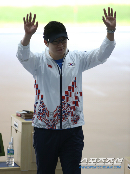 2014 인천아시안게임 사격 남자 50m 공기권총 결선이 20일 인천 옥련국제사격장에서 열렸다. 진종오가 인사를 하고 있다. 진종오는 결선에서 92.1점으로 7위를 기록했다.