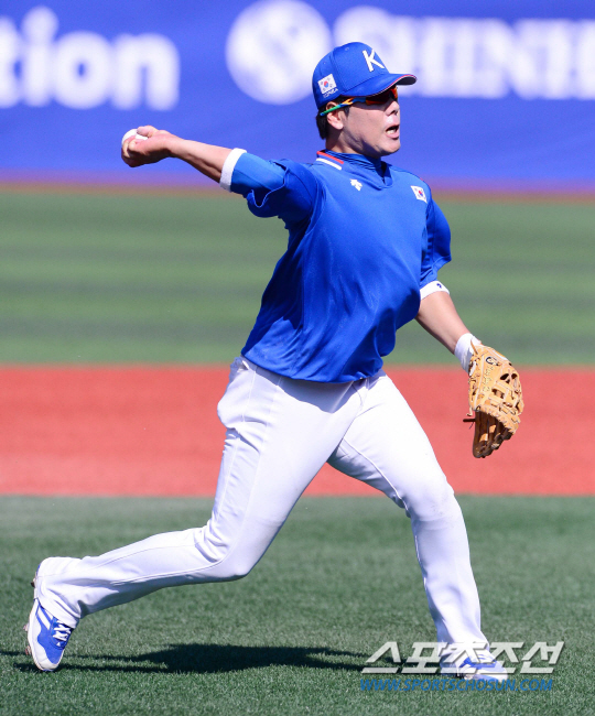 20일 오후 서울 목동야구장에서 2014 인천 아시안게임 한국 야구대표팀의 공식 훈련이 열렸다. 야구대표팀 강정호가 수비 훈련을 하고 있다.