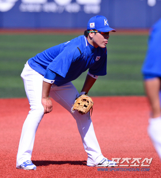 20일 오후 서울 목동야구장에서 2014 인천 아시안게임 한국 야구대표팀의 공식 훈련이 열렸다. 야구대표팀 강정호가 수비 훈련을 하고 있다.