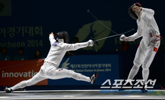 2014 인천아시안게임 펜싱 남자 에페에 출전한 박경두가 준결승전에서 베트남의 응위엔 티엔낫과 만났다. 20일 고양실내체육관에서 열린 경기에서 박경두(왼쪽)가 공격을 시도하고 있다.