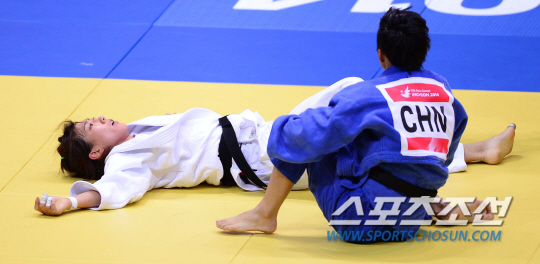 20일 오후 인천 송림체육관에서 2014 인천 아시안게임 유도 여자 -52kg 동메달 결정전이 열렸다. 중국 마인난을 누르고 동메달을 차지한 한국 정은정(왼쪽)이 기뻐하고 있다.