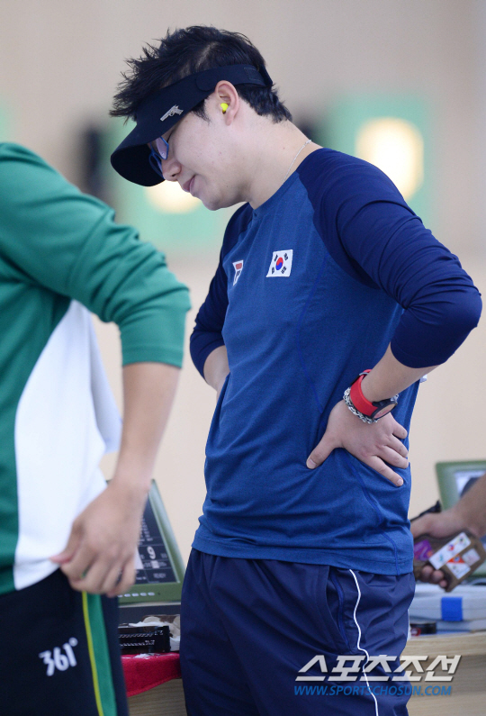 진종오가 21일 인천 옥련국제사격장에서 열린 2014 인천아시안게임 사격 남자 10m공기권총 본선에 출전해 숨을 고르고 있다.