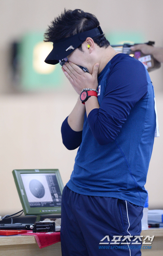 진종오가 21일 인천 옥련국제사격장에서 열린 2014 인천아시안게임 사격 남자 10m공기권총 본선에 출전해 숨을 고르고 있다.