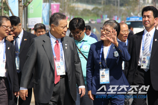 2020 도쿄하계올림픽 조직위원장인 모리 요시로 전 일본총리가 인천아시안게임 경기 첫날인 21일 오전, 구월아시아드 선수촌을 방문했다.