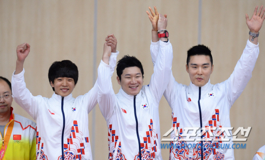 [AG포토] 김청용-진종오-이대명 '영광의 금메달'