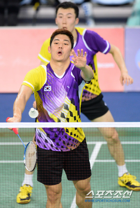 한국의 이용대와 유연성이 21일 인천 계양체육관에서 벌어진 2014 인천아시안게임 배드민턴 단체전 8강전에서 일본의 엔도- 하야가와조의 공격을 막아내고 있다.