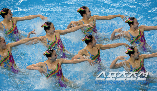 2014 인천아시안게임 싱크로나이즈드스위밍 여자 단체 결승전이 21일 인천 문학박태환수영장에서 열렸다. 경기에 출전한 북한 선수들이 연기를 펼치고 있다. 북한은 83.3914의 점수로 3위를 기록했다.