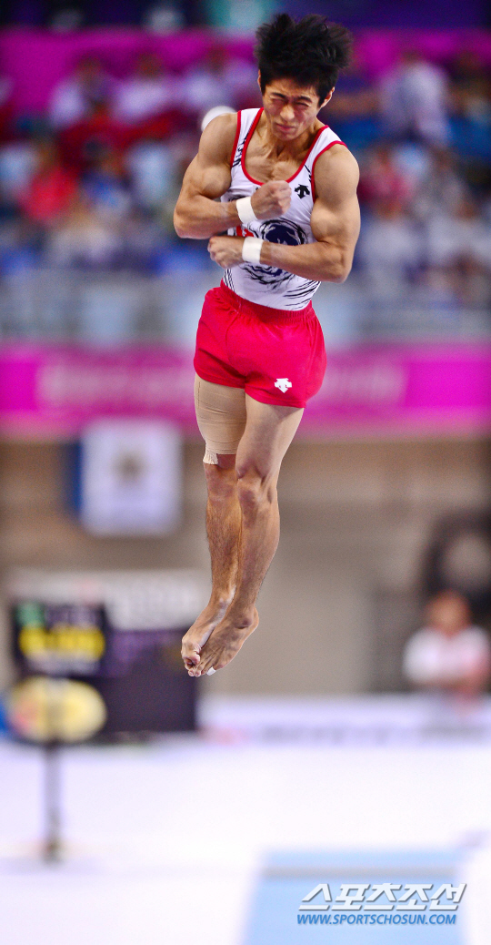 21일 오후 인천 남동체육관에서 2014 인천 아시안게임 체조 남자 개인 예선 및 단체 결승전이 열렸다. 한국 양학선이 도마 연기를 하고 있다.